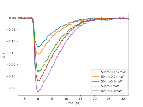图一 不同泵浦功率下砷化镉材料的光泵浦太赫兹探测光谱