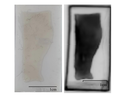 下图为小鼠皮肤的太赫兹成像,左边是样品的真实照片,右边是太赫兹成像结果。