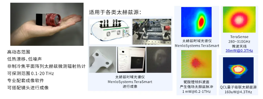 设备参数:像素尺寸17 μm,分辨率640 × 480,工作频率覆盖0.1 THz-20 THz